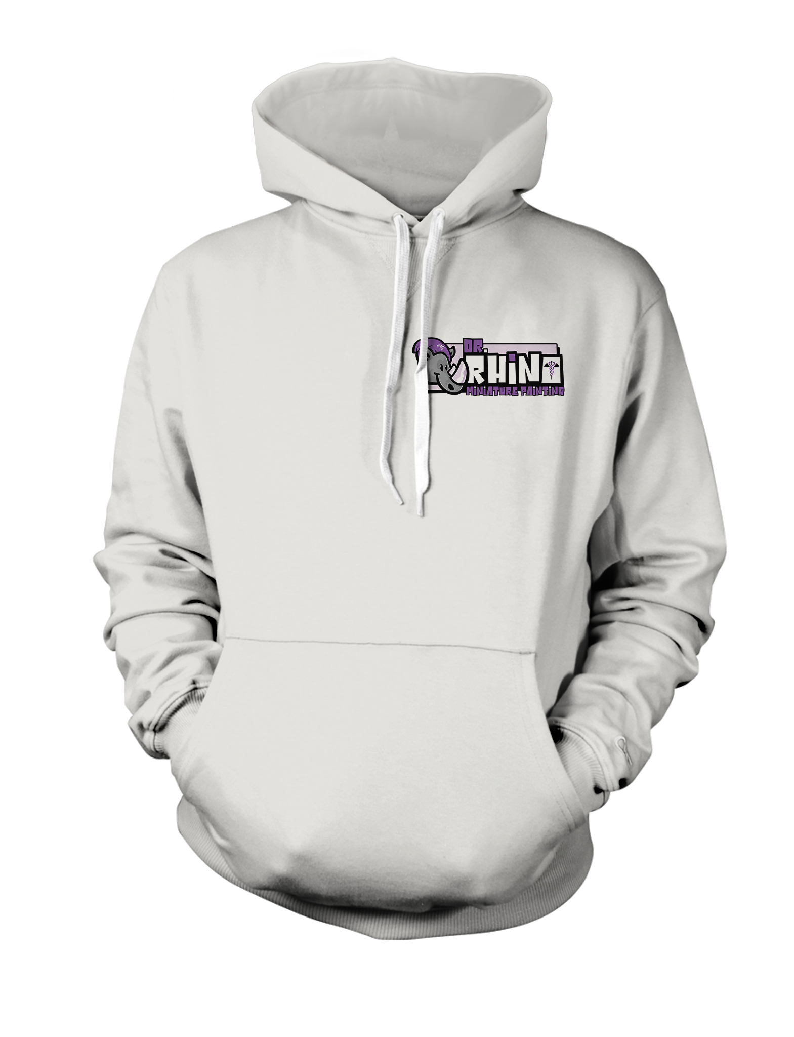 Dr. Rhino's horizontal logo on a comfortable black or white hoodie.
